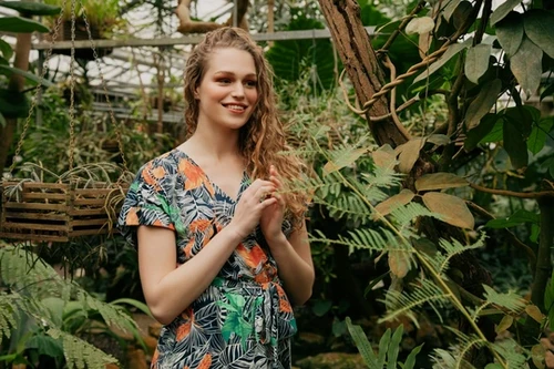 Solange is a wonderful summer dress with a nice V-neckline, a gathered front at the shoulder seams and elegant cuffs at the sleeves. The midi skirt with side slits gives the dress a nice breezy effect. The dress comes with an elastic in the waist so it fits perfectly. You can personalize Solange by adding a belt or ribbon, just the way you like it. No doubt this dress will become one of your wardrobe staples!