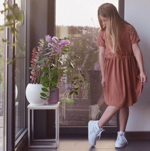 Lotus is a playful dress for little and bigger girls, which has a small slit at the back + hook & eye closure.