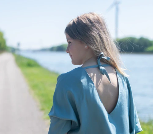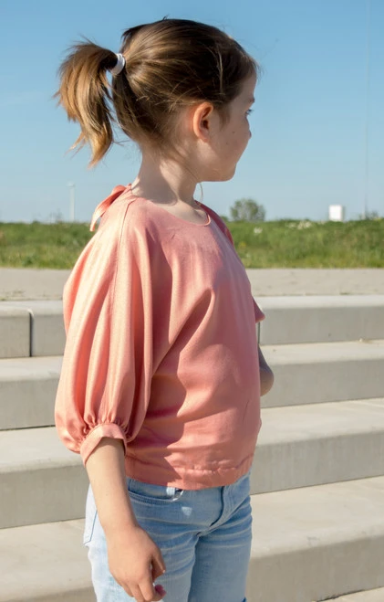 Recommended fabrics for this pattern are woven fabrics that have a nice drape, such as viscose, tencel, crepe and satin, but poplin cotton or double gauze are also eligible.