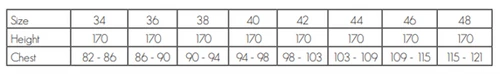 Size chart: