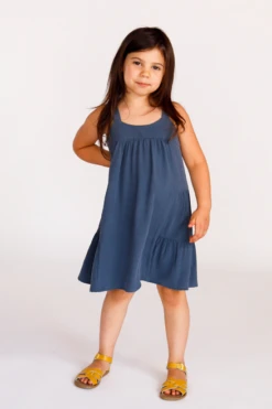 The Mini Waterfall Raglan is a swing shape knit top or dress. There are two views: a ruffle top and a ruffle dress. The sleeve has a slim fit with three length options: short, 3/4, and long sleeve.