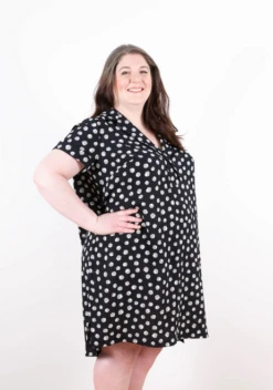 The Pixie Tee is a dropped shoulder oversized tee. View A has short sleeves and gathered hem ties. View B has long sleeves and hem bands. View C has a regular hem. All views offer a dress option and the short and long sleeves are interchangeable.