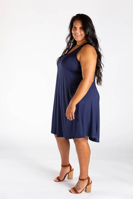 The Pony Tank is a swing shaped knit tank top or dress with a curved hem. There are three views: a cropped tank, a tank top, and a tank dress.