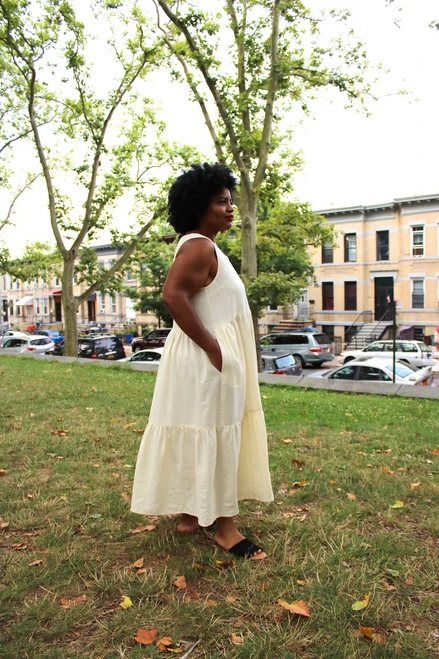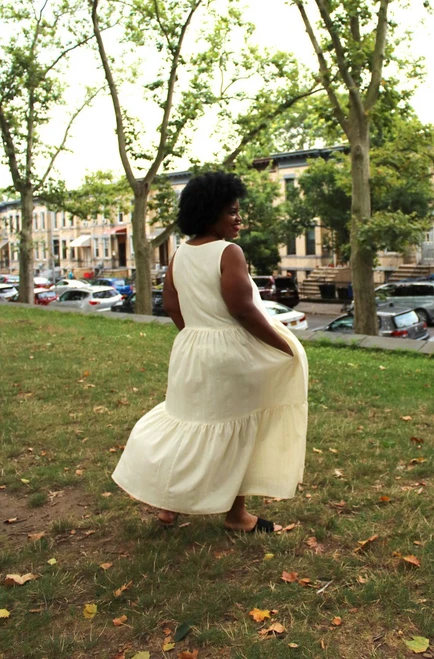 View A has a shirt tail hem, chest pocket, & ends at the upper hip. View B has sewn-down side seam pockets, & a shirt tail hem that lands just below the knee. View C features a gathered skirt with patch pockets that hits below the knee, & is attached to the tank slightly above the natural waist. View D is also cut just above the natural waist, with a two-tier midi length full gathered skirt, which has pockets sewn into the side & waist seams, so they stay in place. Pockets can be added or subtracted to any view as desired.