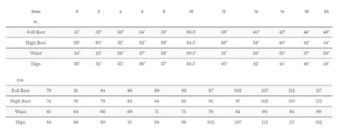- 45″ (1.15 m): Sizes 0-6: 2.25 yd (2 m), Sizes 8-14 = 2.5 yd (2.25 m), Sizes 16-20 = n/a*