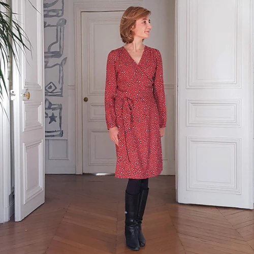 The Nico dress is a feminine and charming wrap-over dress. Its raglan sleeves, enhanced with nice shoulder yokes, give it an original and refined finish.