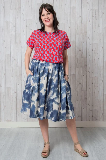 A subtle curve to the body creates a fitted and feminine silhouette. You can make Astrid in a variety of stretch fabrics from sweatshirt for cosy jumpers and dresses, to ponte roma and French terry for summer dresses, and jersey for t-shirts; size up for a loose fitting and casual look, or take advantage of the stretch for a more fitted and smarter looking garment.