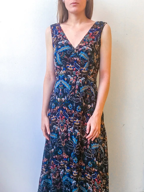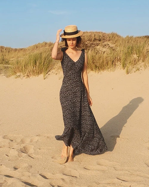 This sewing pattern offers several versions: maxi dress, short dress (above knee), back V-neckline (compatible with a bra) or a more covering back bodice for Winter. This new version includes a bust adjustment option for all cup sizes from A to G.