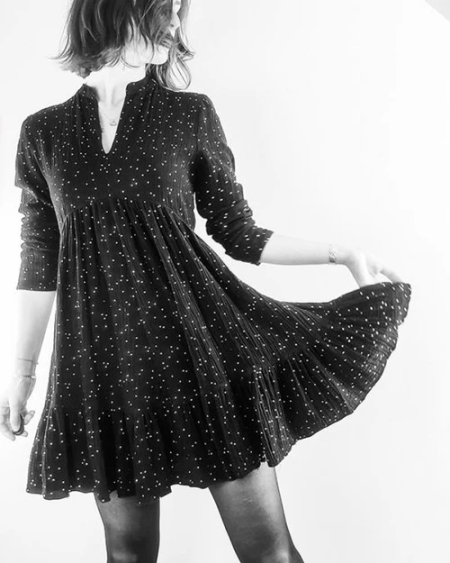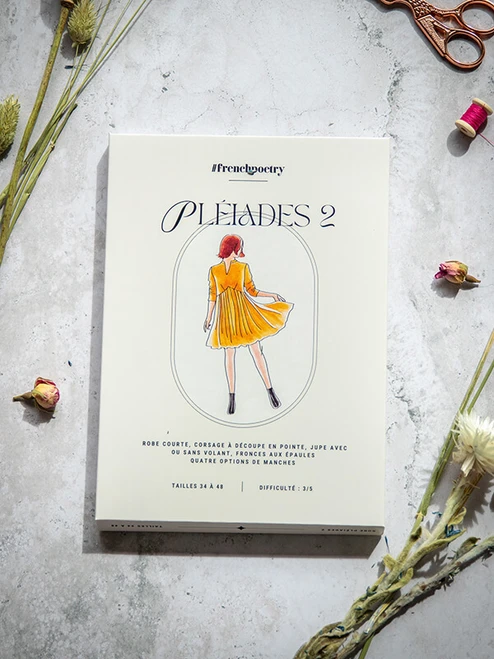 Recently updated and redrafted, French Poetry created the Pleiades 2 dress in response to the success of their Pleiades 1 pattern. Pleiades 2 features bust darts, a shirt-like bodice fit and a gathered skirt at front and back. This dress pattern includes many style variations that can be combined to make a number of unique looks from one single pattern. It includes short or long sleeves and a variety of collar and skirt options.