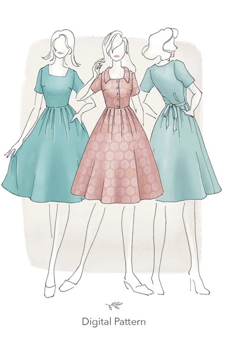 Featuring a square neckline with an optional collar, the bodice is shaped with bust darts and you can choose whether you’d like a full button-down bodice (View 1) or have it cut on the fold (View 2).