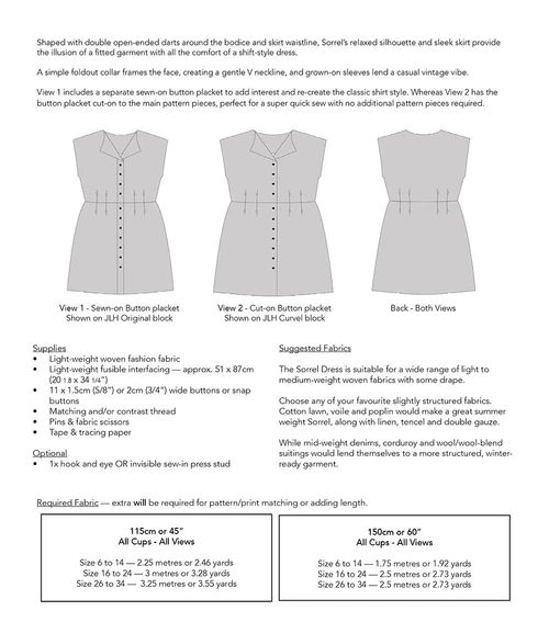 The Sorrel Dress is available in both the Original and Curve size ranges. The Original includes sizes 6-24 with A to D cup bodices.
