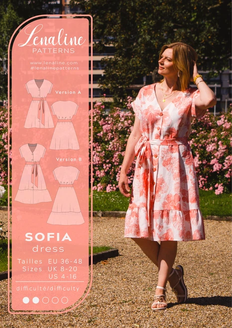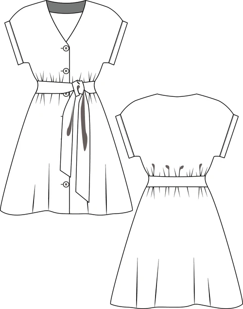 SOFIA is a summer dress buttoned on the front with a V-neckline. The low shoulders with a small lapel give it a nice casual style. Wear it with a belt to accentuate you waist.