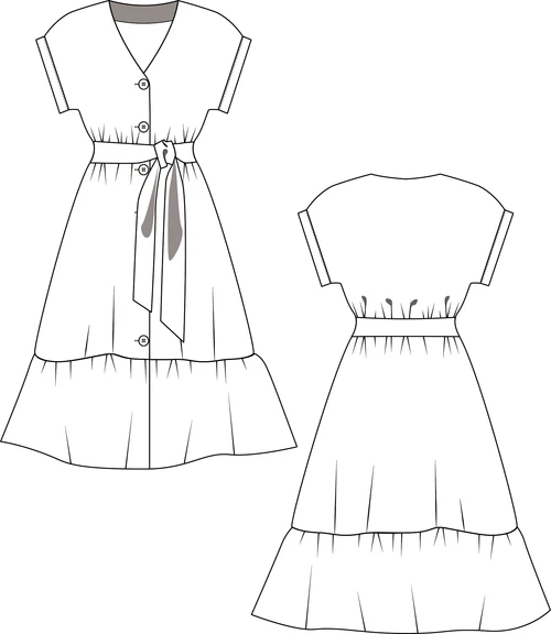 This shirt-dress will become a masterpiece of your summer wardrobe. The two versions, with or without ruffles gives you the opportunity to customize it.