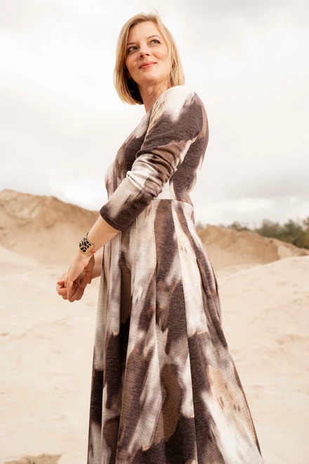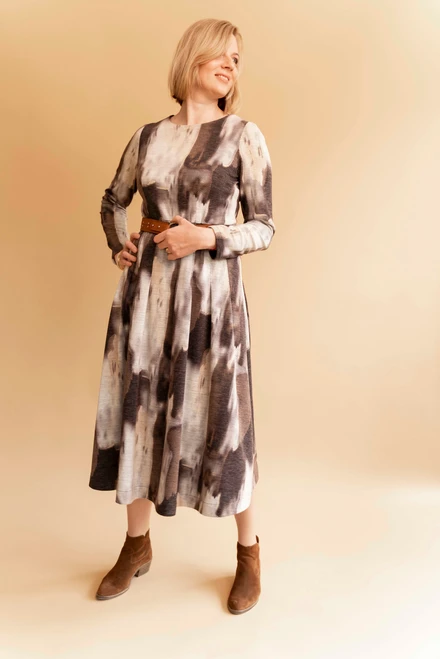 Two versions are included in this pattern: one with sleeves and the other without them. You can also change the length of the skirt so that you can either have it be of a midi length or shorter.