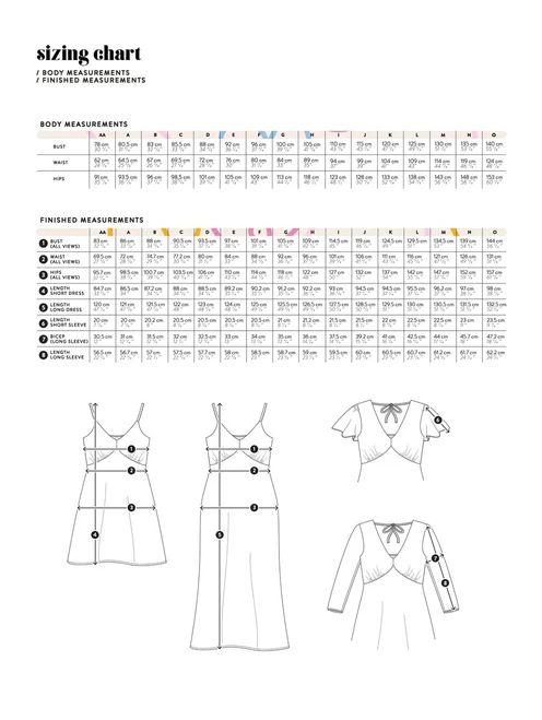 The Cove is THE ultimate slip dress pattern. The pattern comes with a sleeveless, short and long sleeve option, as well as 2 different lengths, making it a dress for every season! The skirt is also cut on the bias, giving the dress a lot of drape and adding extra stretch for comfort.