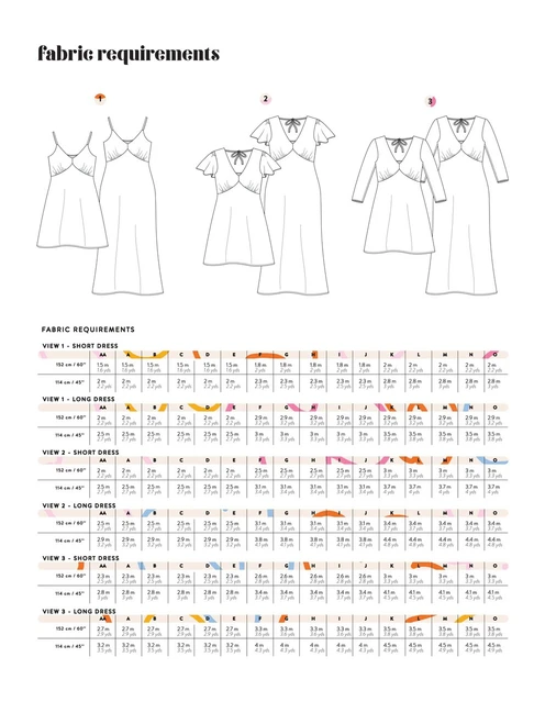 The Cove slip dress will work best with light weight woven fabrics that have a lot of drape such as silk, satin, rayon and viscose (crepe, voile, poplin, twill, challis).