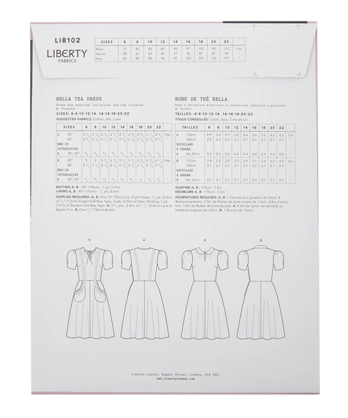 The new Liberty Fabrics dressmaking patterns draw inspiration from our fashion archive, with contemporary style details offering a fresh twist on classic vintage shapes. The Bella Tea Dress creates a streamlined style with a structured waist and puffed sleeves – a ‘40s-inflected silhouette with all-modern charms. Make this Liberty dress pattern with silk, linen or Tana Lawn™ cotton, in sizes 14-22. If you require sizes 6-14, please see our other listing.