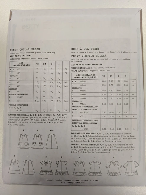 The new Liberty Fabrics dressmaking patterns draw inspiration from our fashion archive, with contemporary style details offering a fresh twist on classic vintage shapes. The Penny Collar Dress creates a loose, ruffled shape finished with puff sleeves and a flat collar option – a comfortable and cool design that’s perfect for playing. Make this Liberty pattern with linen, denim or Tana Lawn™ cotton, for ages 12 months to 4 years.