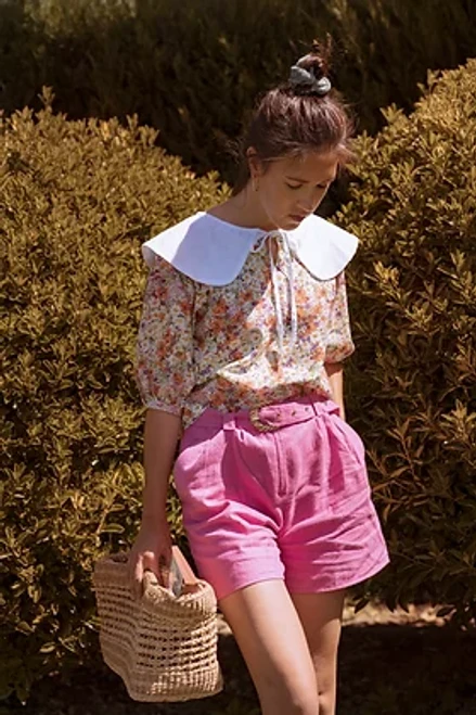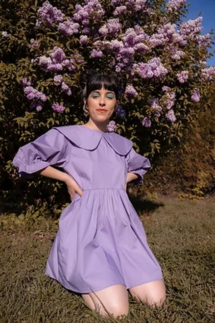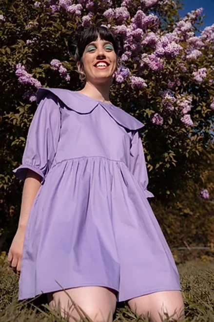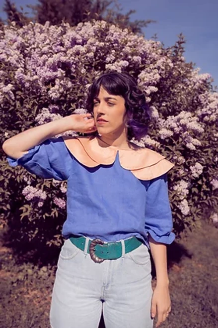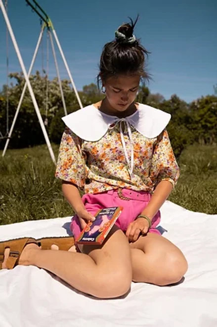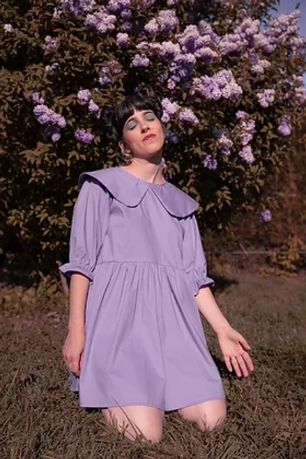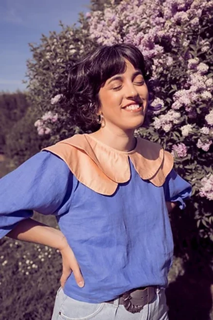 Charme is a classic straight blouse pattern with puffed sleeves that wave around the elbow. But the pattern is also available in a dress, with a skirt gathered at the waist and two pockets in the seams. Its centrepiece is its collar, which can be single or double, nicely emphasizing the face. Soft, flowing fabrics suit it better, so you can create pretty gathers on the front. Do not hesitate to play with colours and fabrics.