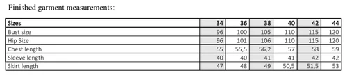 - Main fabric, with fluidity and flexibility (cotton, viscose, linen …): 135×140 cm (blouse), 190×140 cm