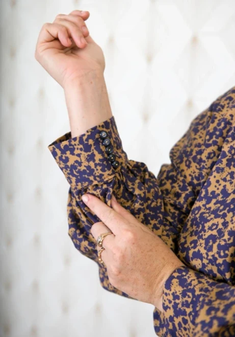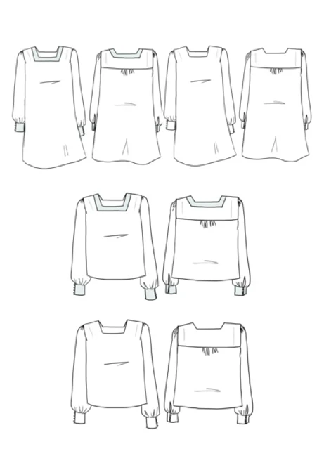 The Lauren pattern features stunning, gently gathered sleeves and a structured square neckline that can be highlighted with a neckline band. The long buttoned cuff add a touch of elegant retro.