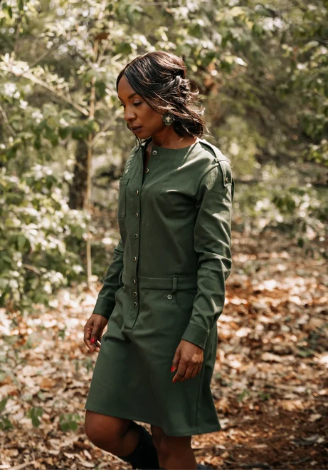 VIPÈRE is one of those garments that slips on like a second skin, and in which you feel ready to conquer the world! Available as both a jumpsuit and a dress, VIPÈRE has a well structured fit, and Fauve details are imprinted on the silhouette: signature pocket and dart work, a scooped neckline, and shoulders beautifully highlighted with buttoned tabs that embellish it like jewels. With its flexible approach and proud look, you will be unstoppable when you’re in Vipère…
