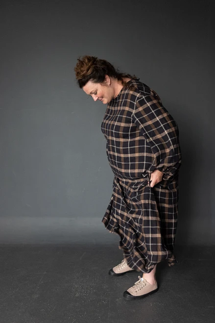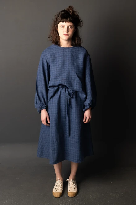 The balloon sleeves of this simple top and dress are the only detail that it requires to stand out. Less is more. The full sleeves are gathered with a tie which is threaded through a buttonhole, alternatively you can omit this buttonhole and insert elastic instead.