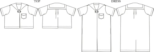 A loose fitting dress or top with front and back pleats, side in-seam pockets (dress only), breast pocket and a sailor collar. Perfect attire for any board walk.