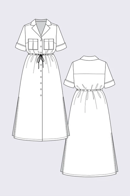 Choose a light weight or medium weight non-stretch shirting. The rayon of the sample garment is quite drapey but you can choose a less drapey fabric, such as lightweight linen, if you prefer.