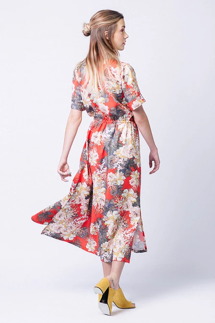 Reeta is a classic, loose-fitting shirt dress with simple but thought-out details. The dress has pleated breast pockets, a shirt collar and a waist gathered with a cord. The turn-ups of the t-shirt sleeves and the deep vents on the midi-length hem add carefree character to the dress.