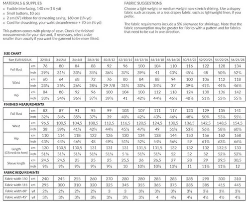 Sizes: EUR 32-56 | US 0-24 | UK 4-28 |