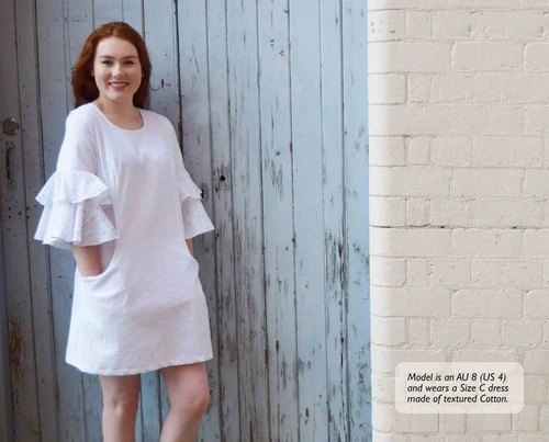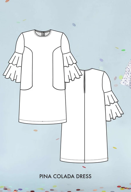 But it is also a dress. The Pina Colada dress features double-layered flounce sleeves, princess seams with hidden pockets, a back-neck opening, and interior bias binding at the neck. Skill Level: Beginner to Intermediate.