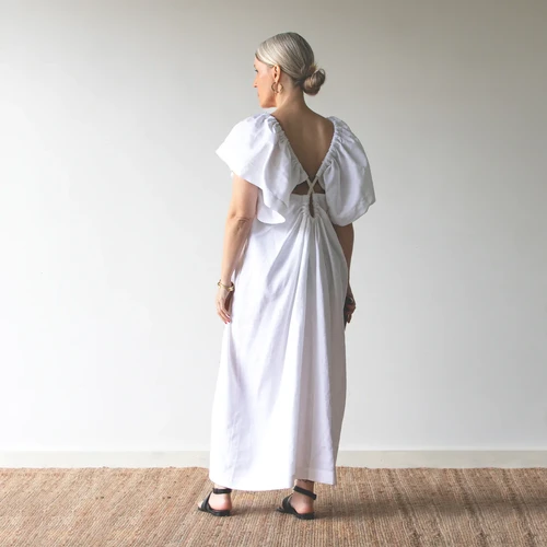 The Ether dress is drafted two sizes to a grade with the flexible gathering to be used to adjust the fit.
