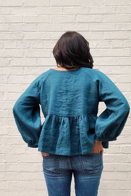 For a flowy and romantic dress or top with less volume, we suggest a drapey fabric such as rayon challis, ecovera challis, rayon/linen blends or sandwashed silk. For a fuller, cottagecore look, linen or cotton lawn is perfect.