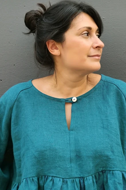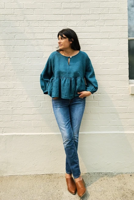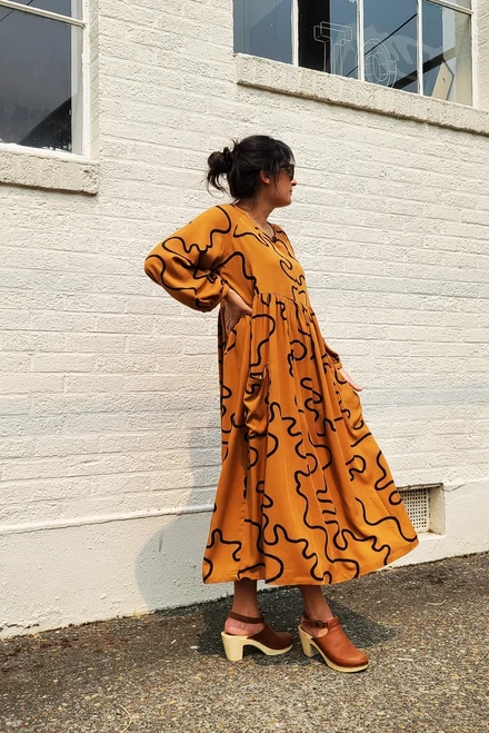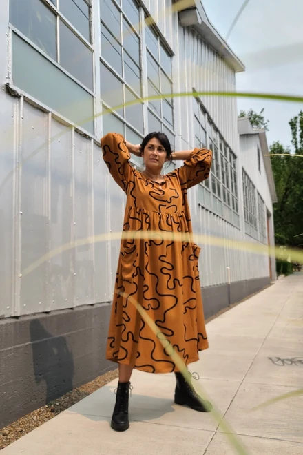 With its flowy and oversized fit, we would classify the Romey Gathered Dress and Top as “secret pajamas” that can be worn casually with sneakers, sandals or boots. Sew one up in a slinkier fabric for a more polished look!