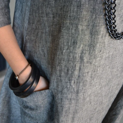 The Lily Linen Dress is flared, flattering, light, loose and comfortable. Featuring a cut-away shoulder line, pleat tucks on the hem and a clever folded pocket detail. Lily can also be made as a sleeveless dress (Note: extra binding required).