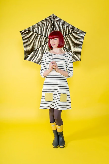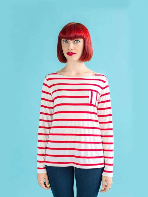Fill your wardrobe with classic Breton tops, cosy knit dresses and sixties-style funnel necks – all from the same pattern and no overlocker or serger required! Choose from top or dress length, boat neckline or funnel roll neck, long or three quarter sleeves with optional rolled cuffs and patch pockets.