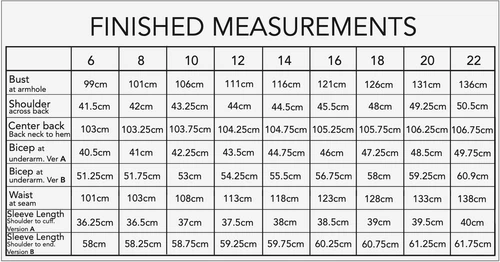 Finished Measurements: