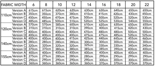 FABRIC 460cm based on a width of 140cm.