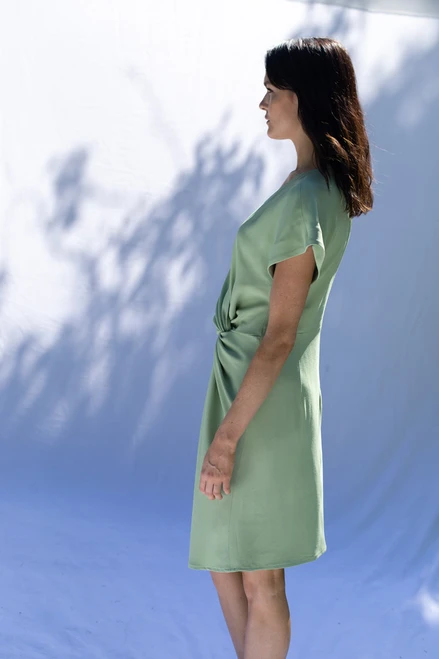 This pattern comes with two front variations so you can make the twist off to the side, or in the centre front, and the back remains the same. Both provide suitable day to night dresses depending on the fabrication.