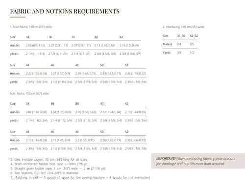 IMPORTANT! When purchasing fabric, please account for shrinkage and buy 5% more than required.