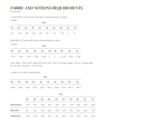 Important! The pattern layout for the main fabric 135cm wide is available only up to size 48. For sizes 50-52, please refer to the layout for the main fabric 145cm wide.